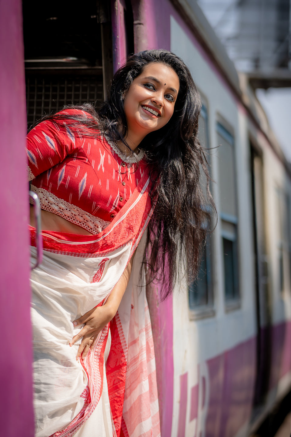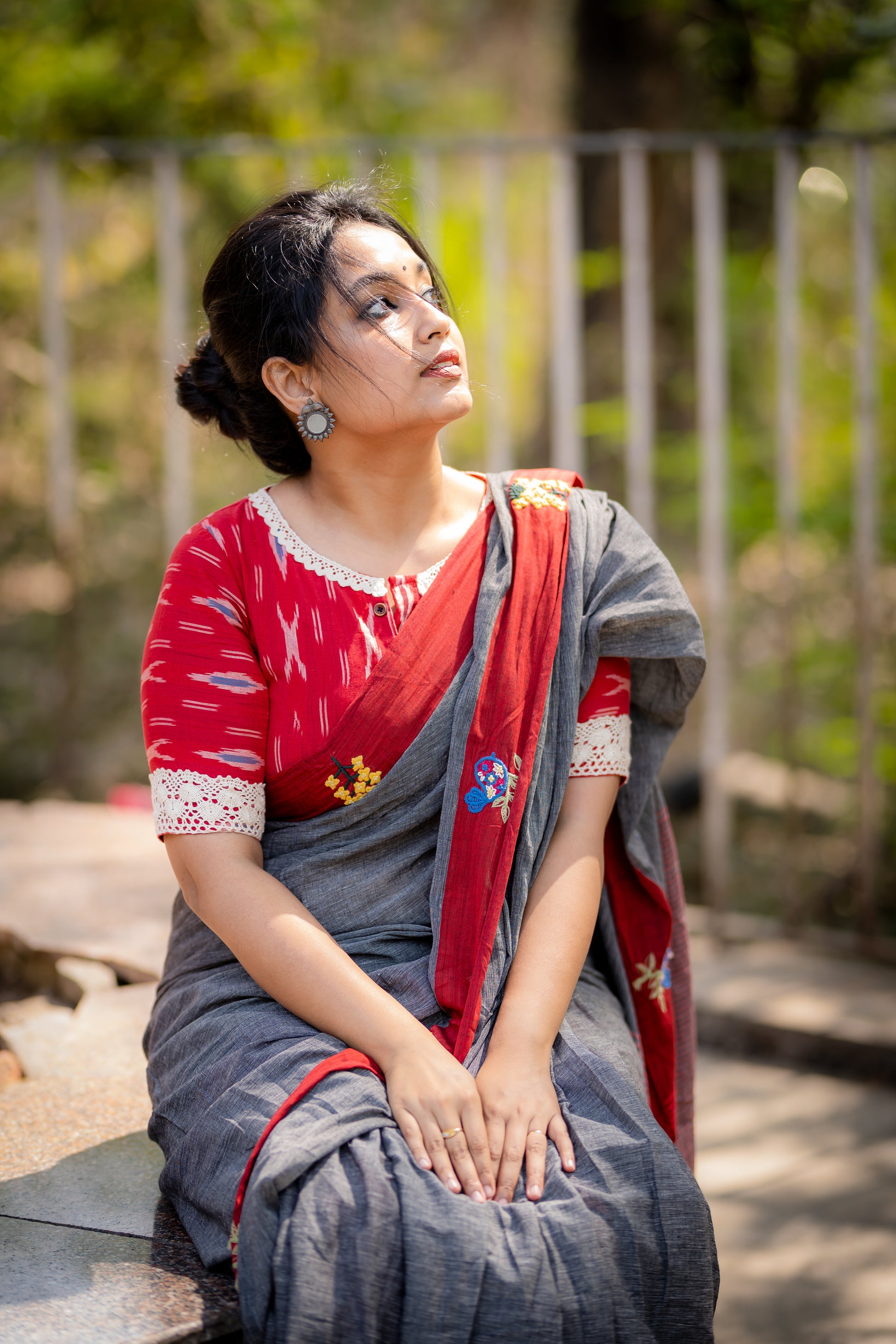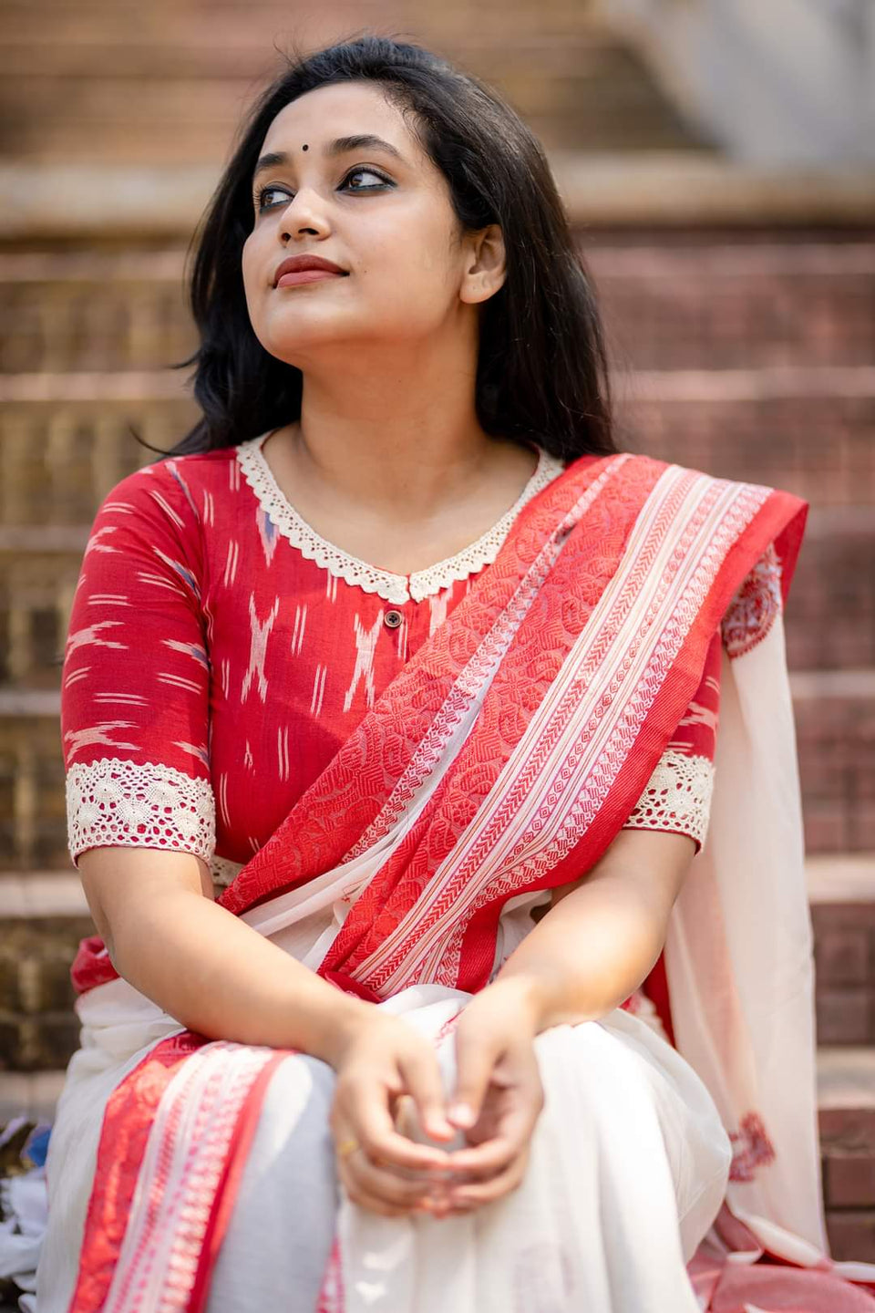 Cotton Handloom Ikkat with hand crocheted lace detailing.