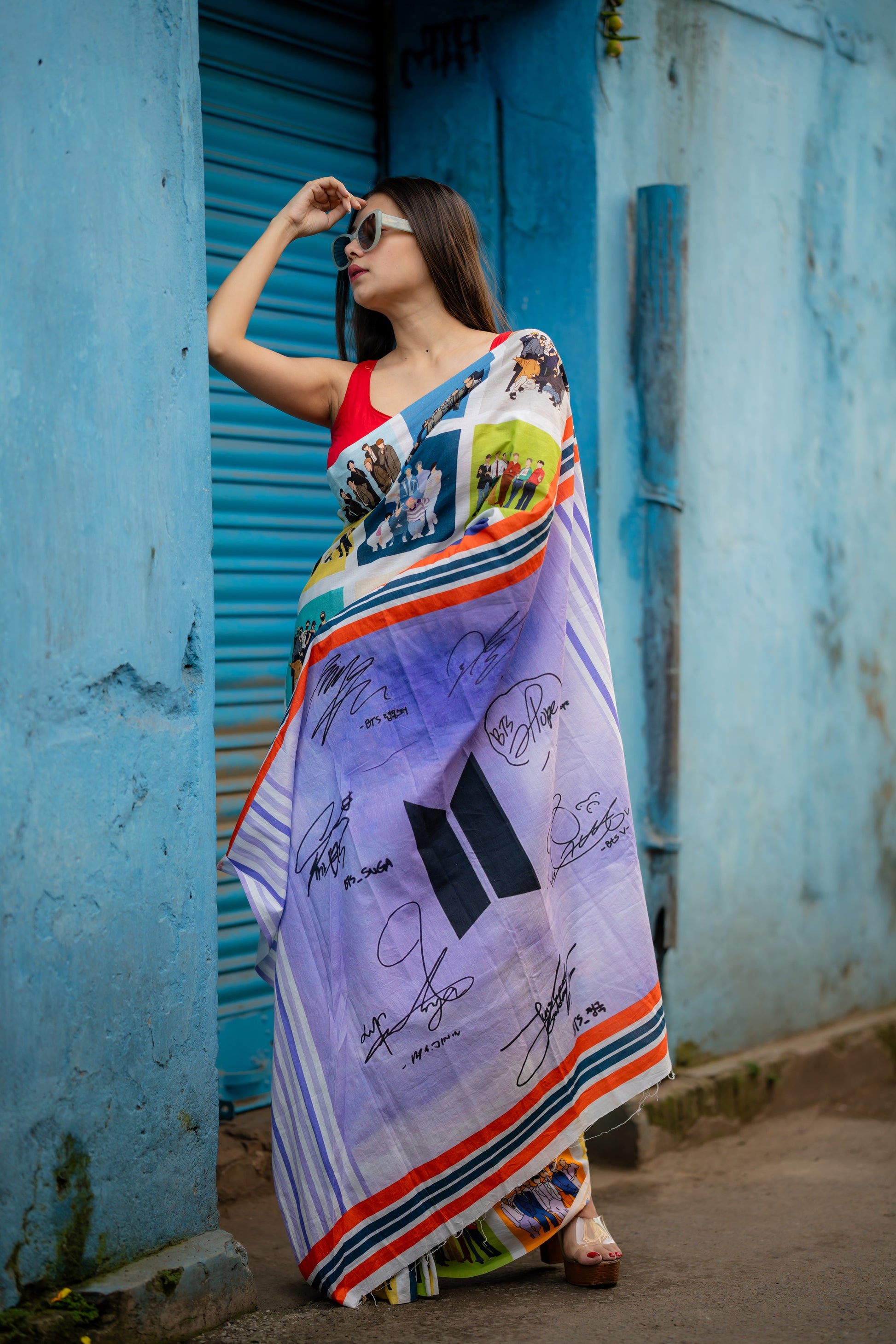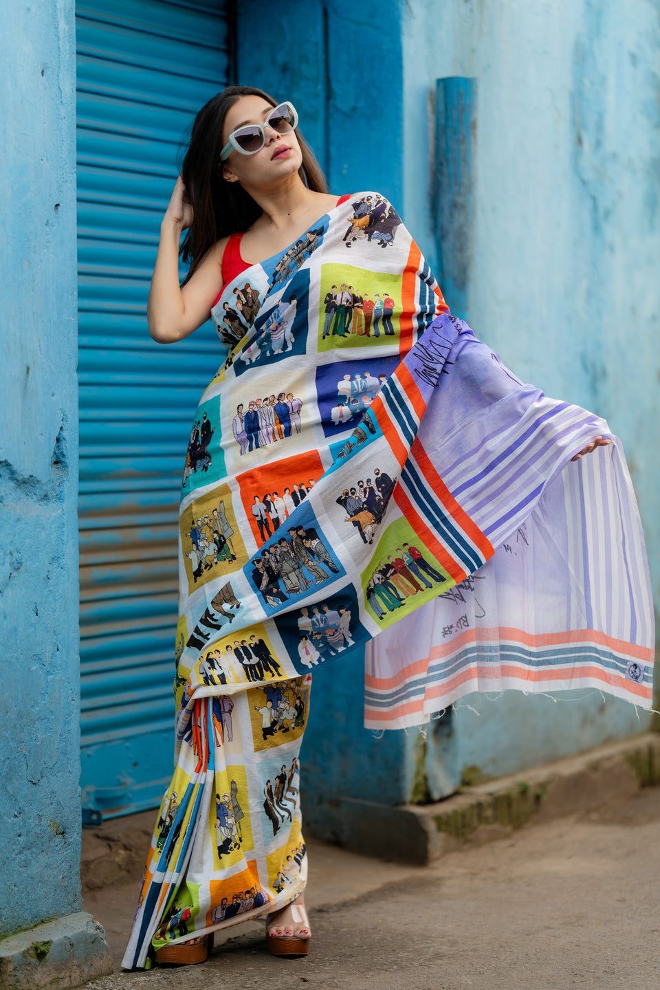 I love the unique print. It makes the saree special and different.