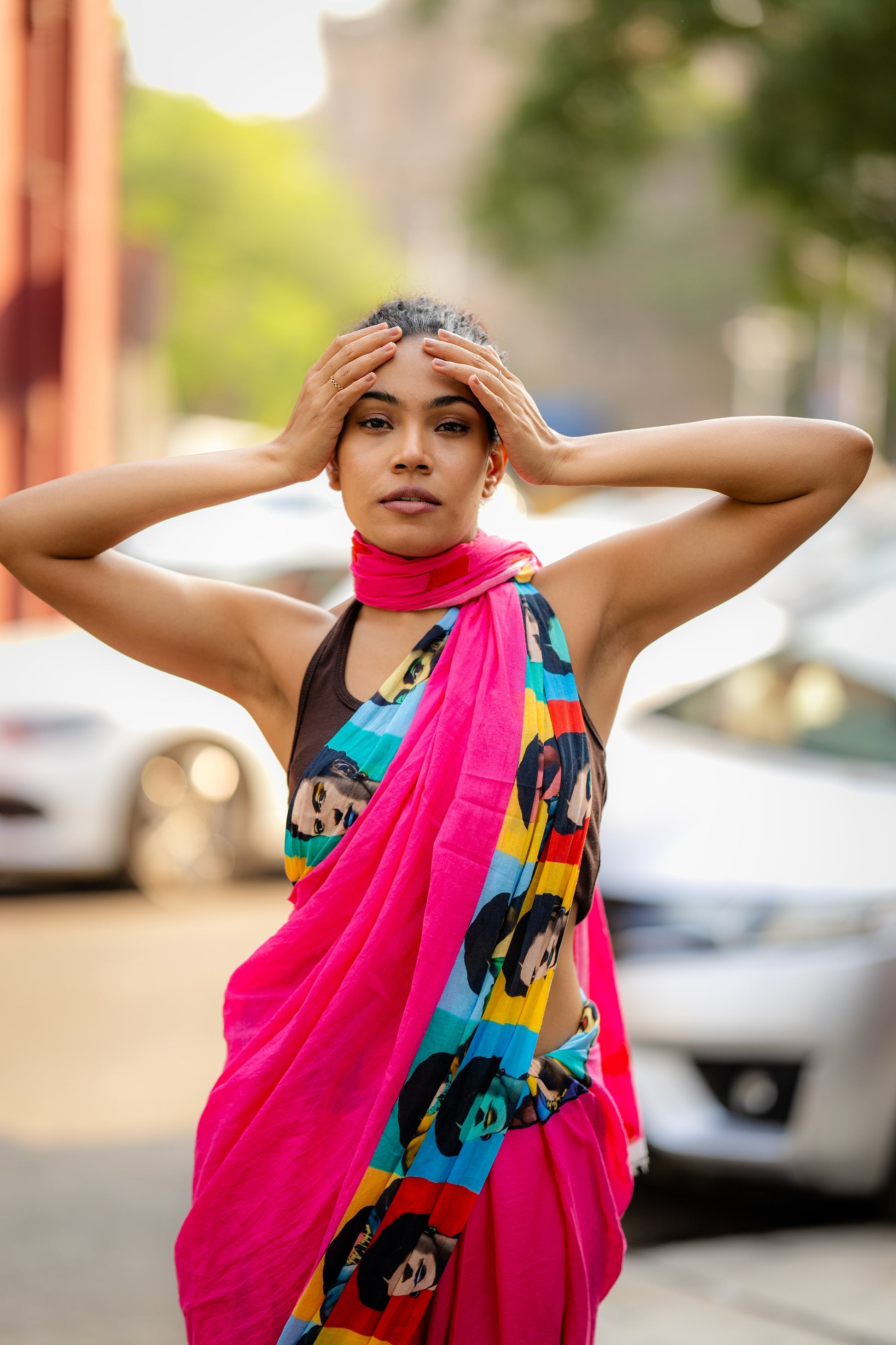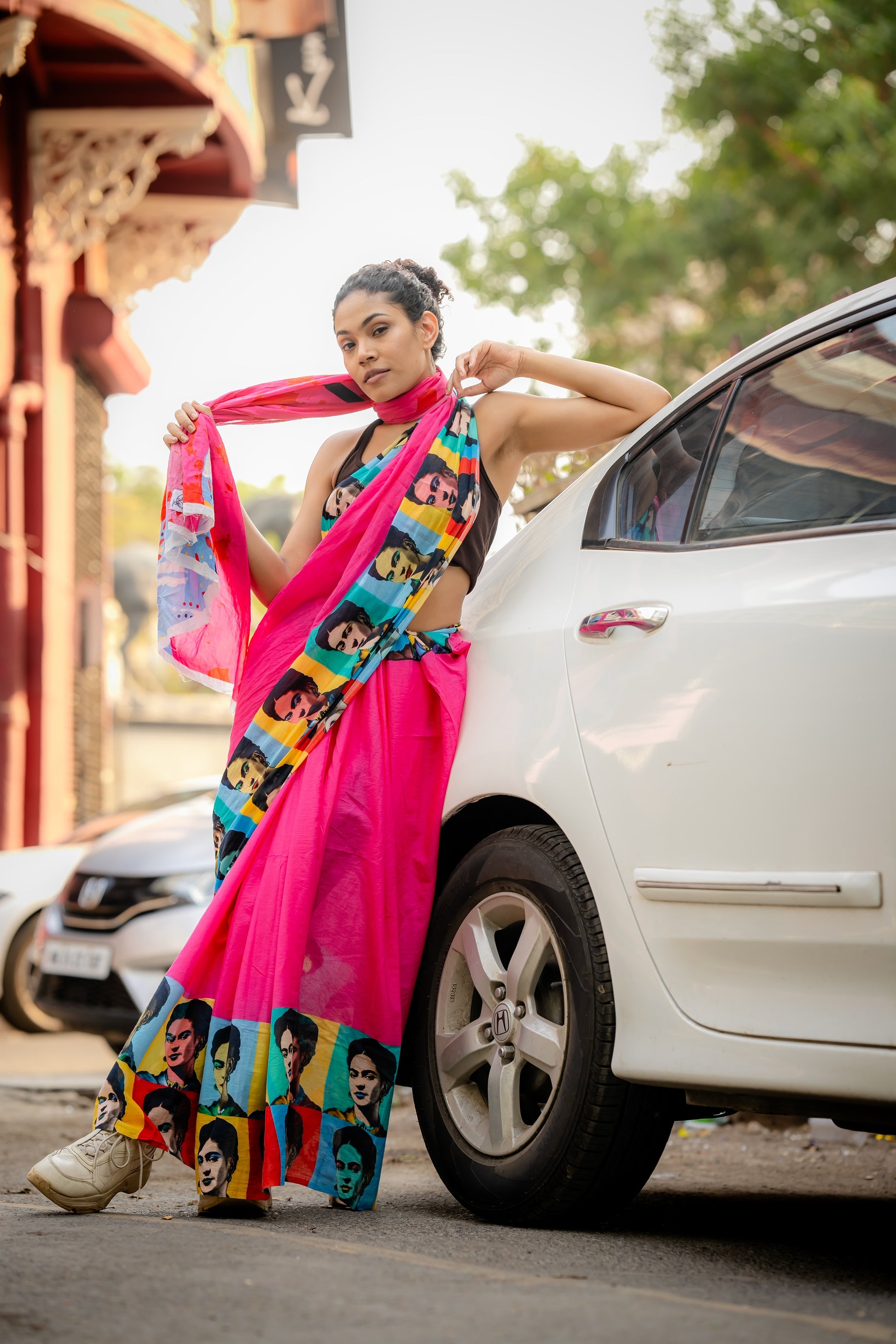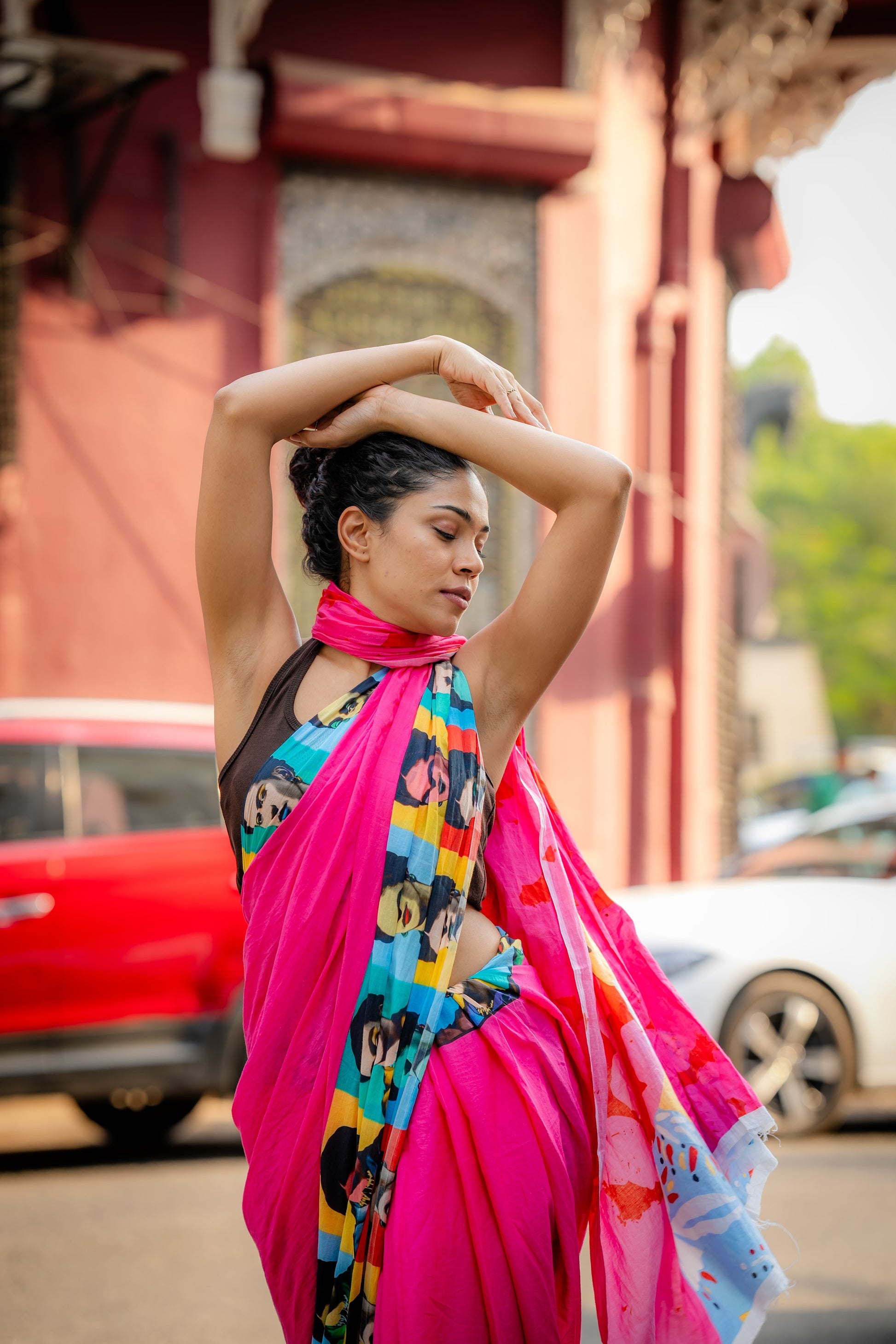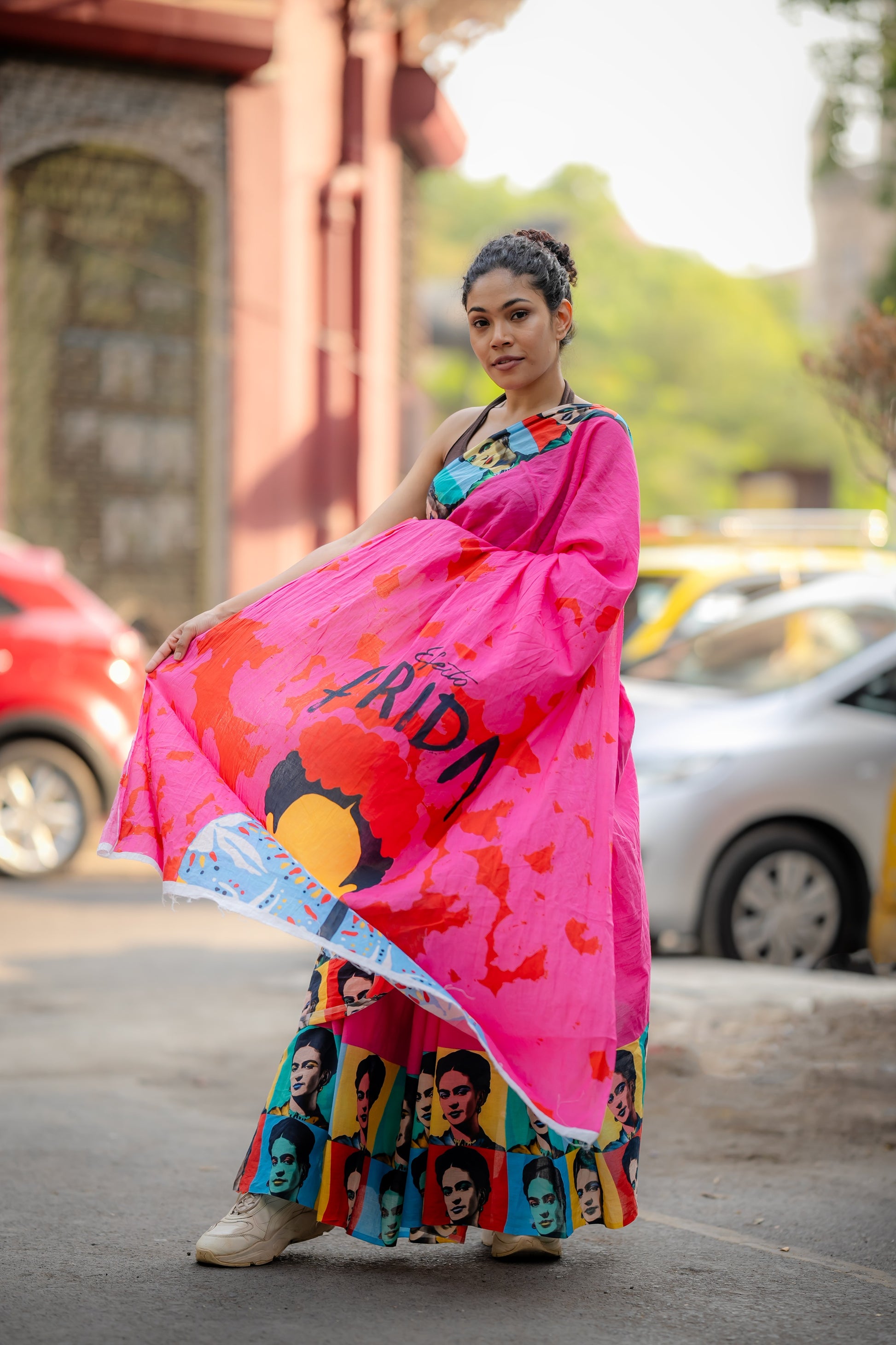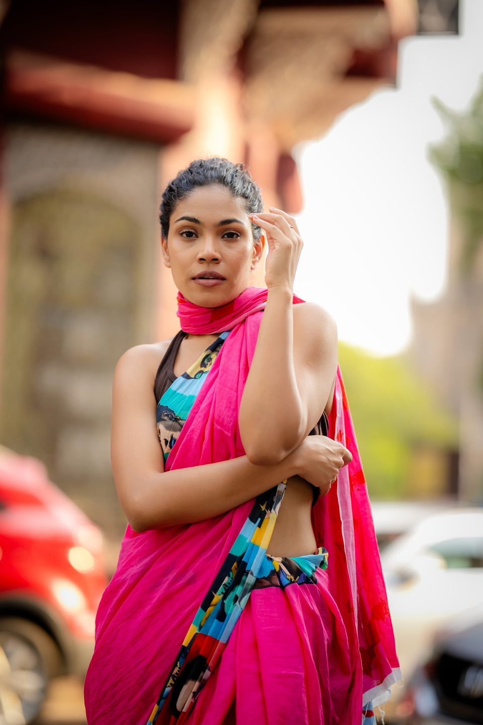 Handspun handwoven cotton saree, digitally printed. Length 6 mts, Width 59 inch, Blouse piece : No
