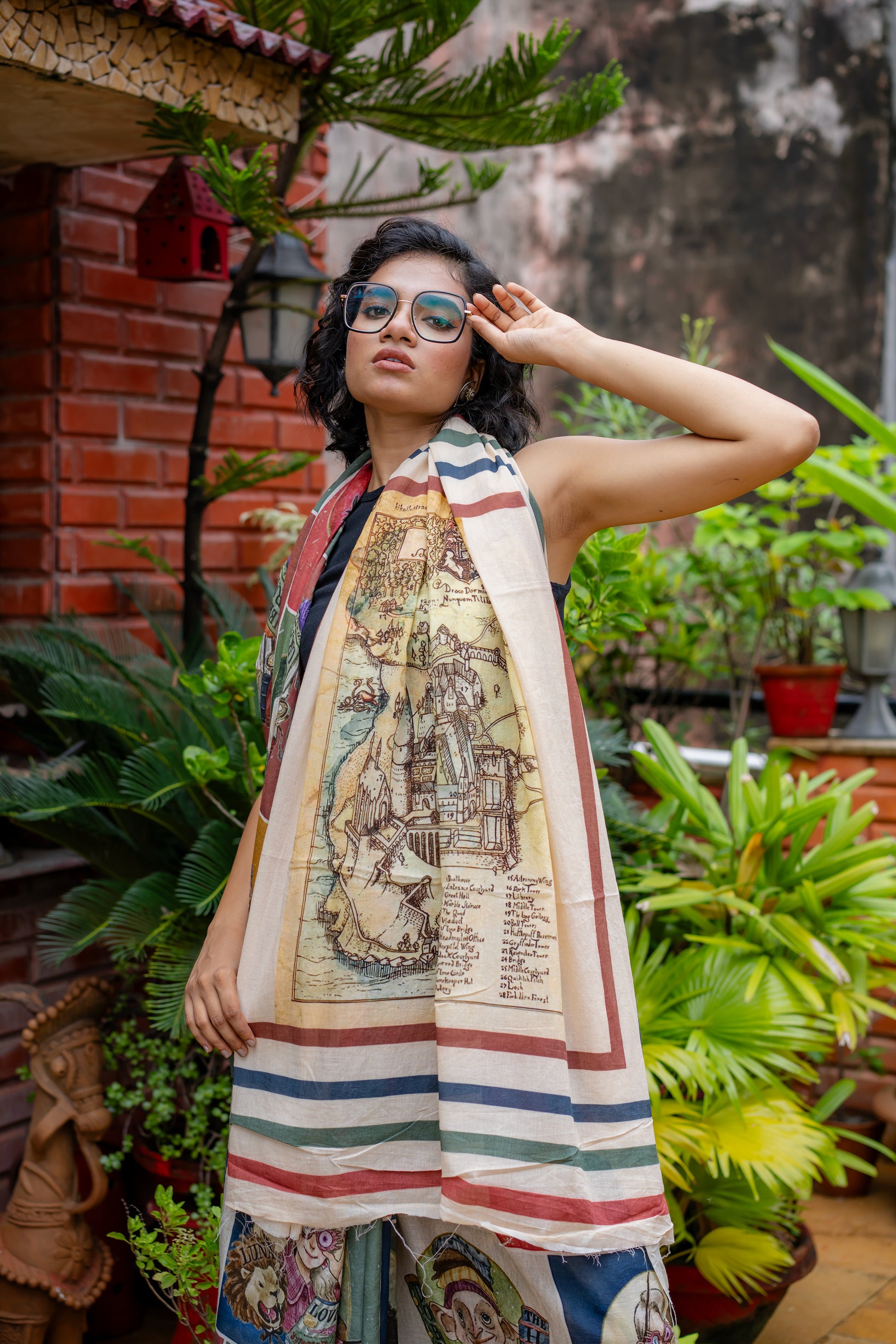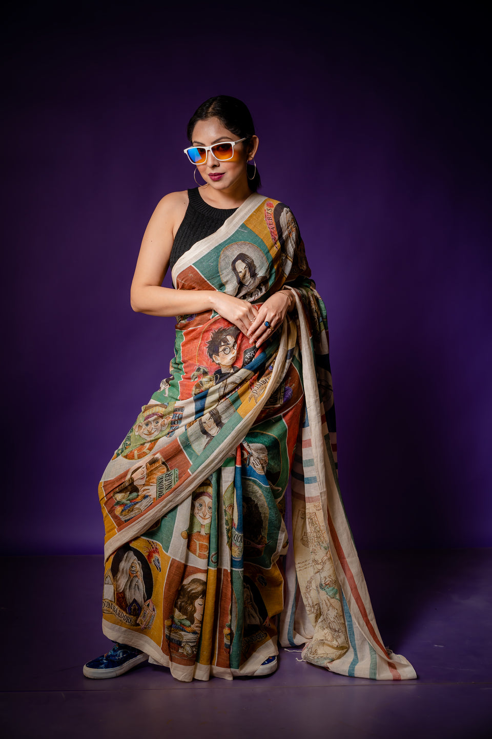 Handspun handwoven cotton saree, digitally printed. Length 6 mts, Width 45 inch, Blouse piece : No