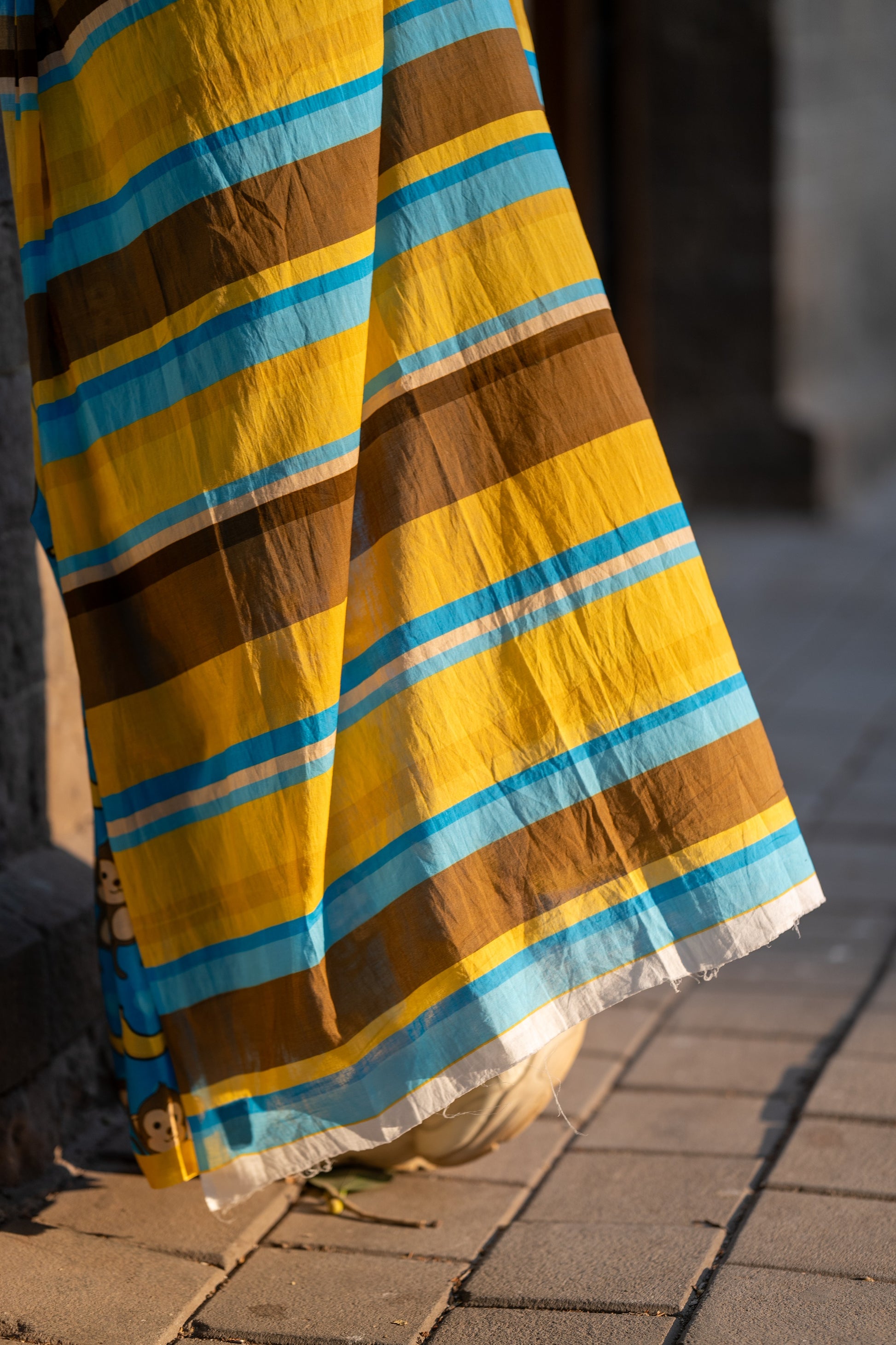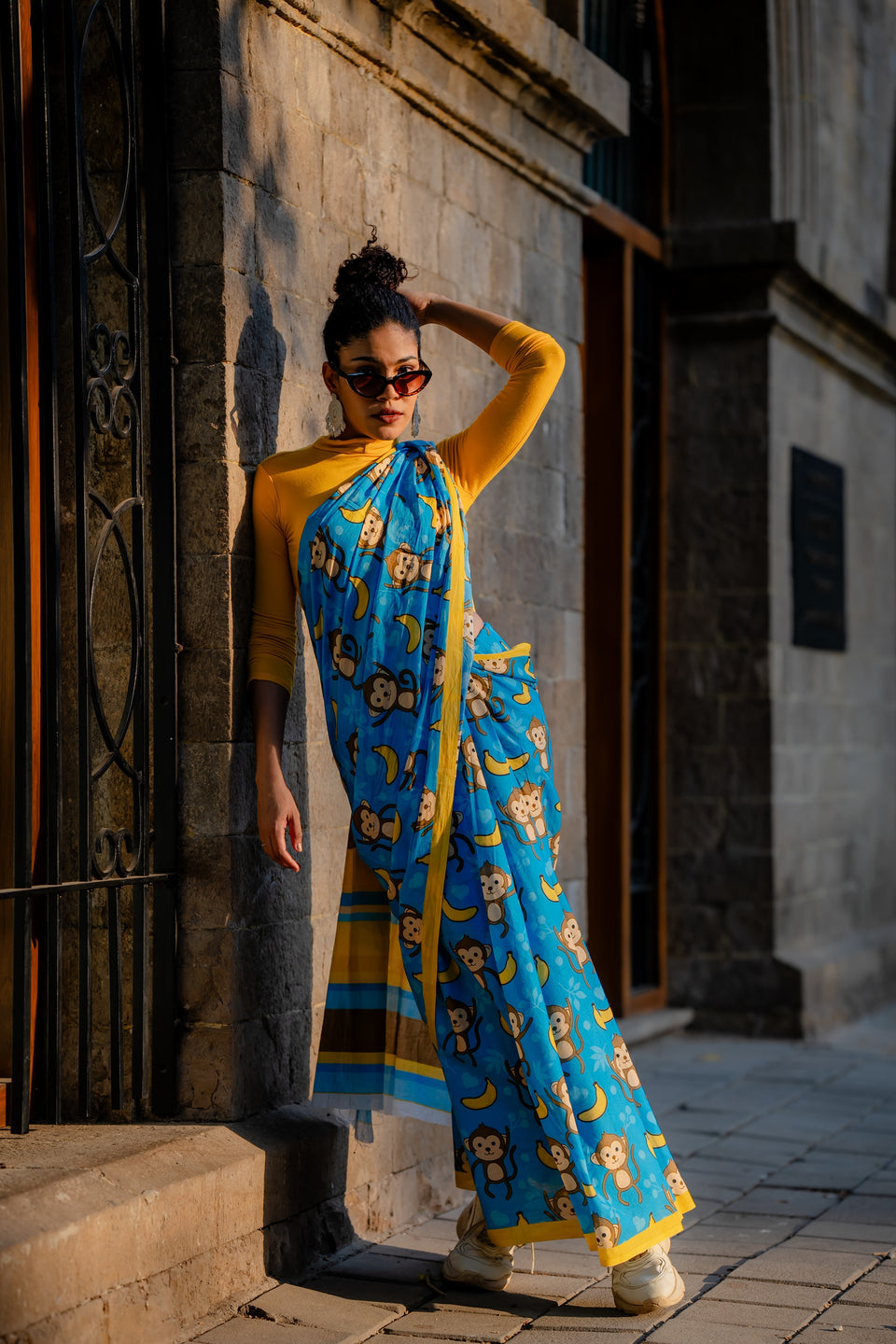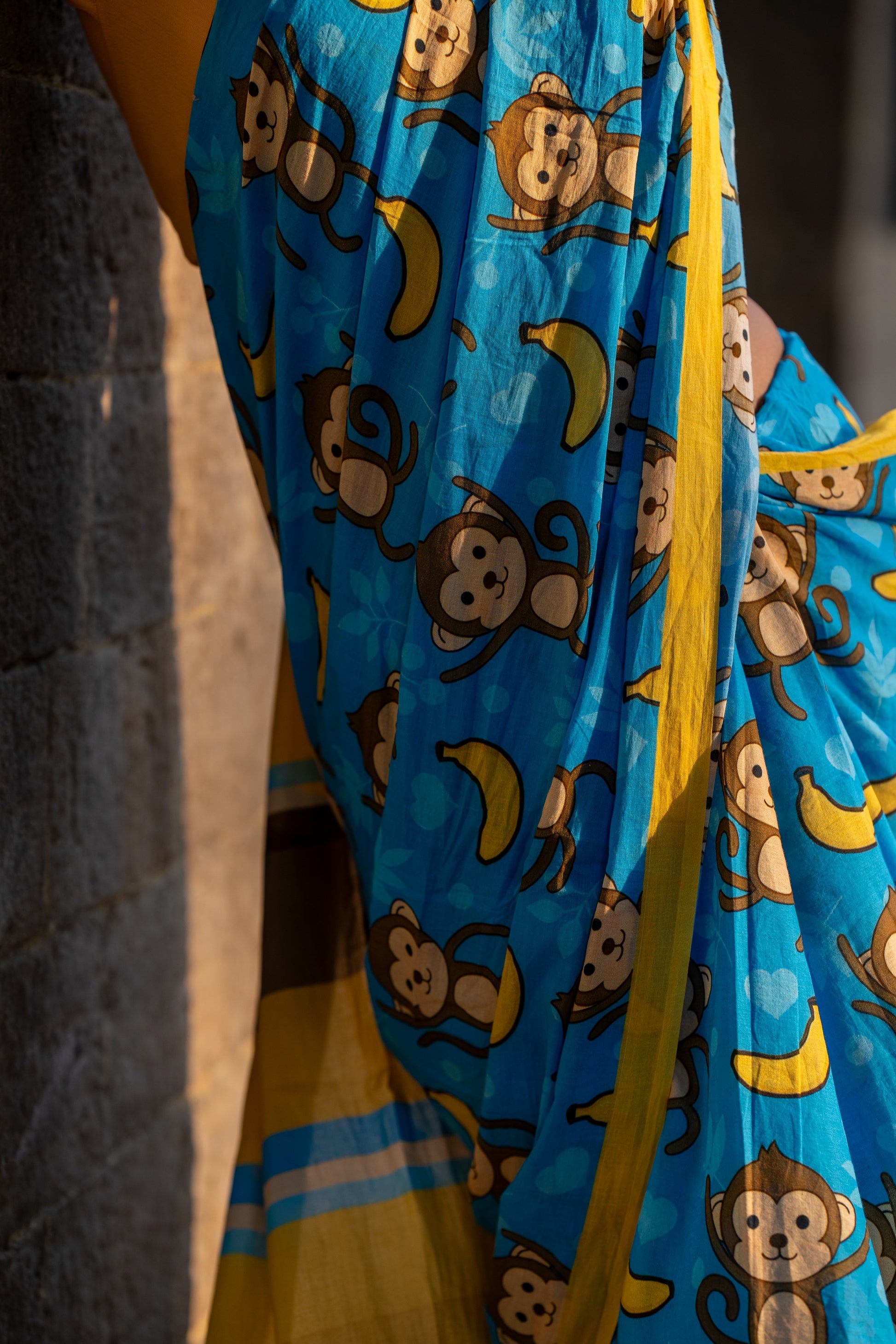 Handspun handwoven cotton saree, digitally printed. Length 6 mts, Width 60 inch, Blouse piece : No