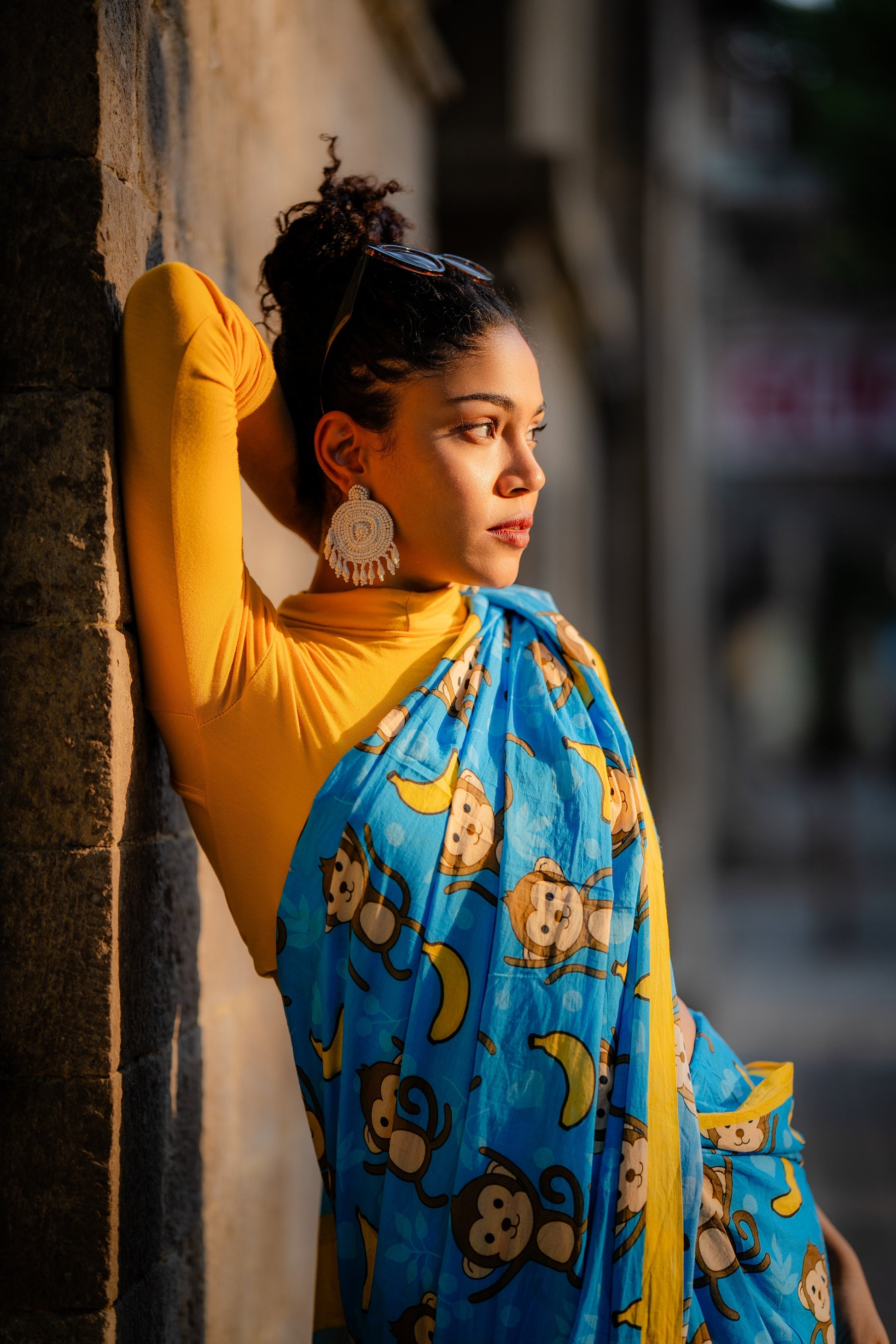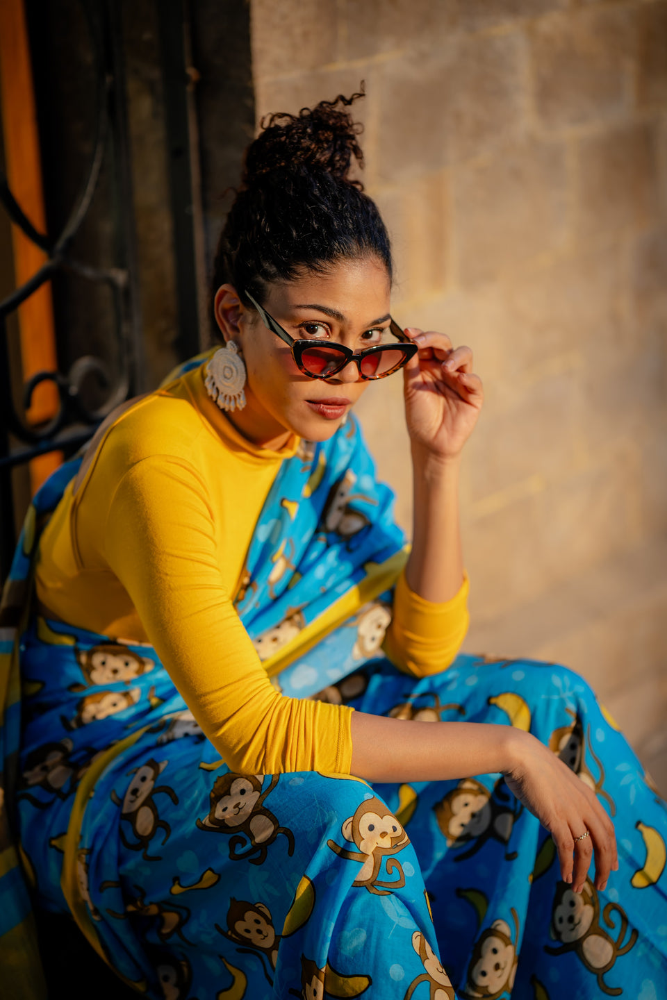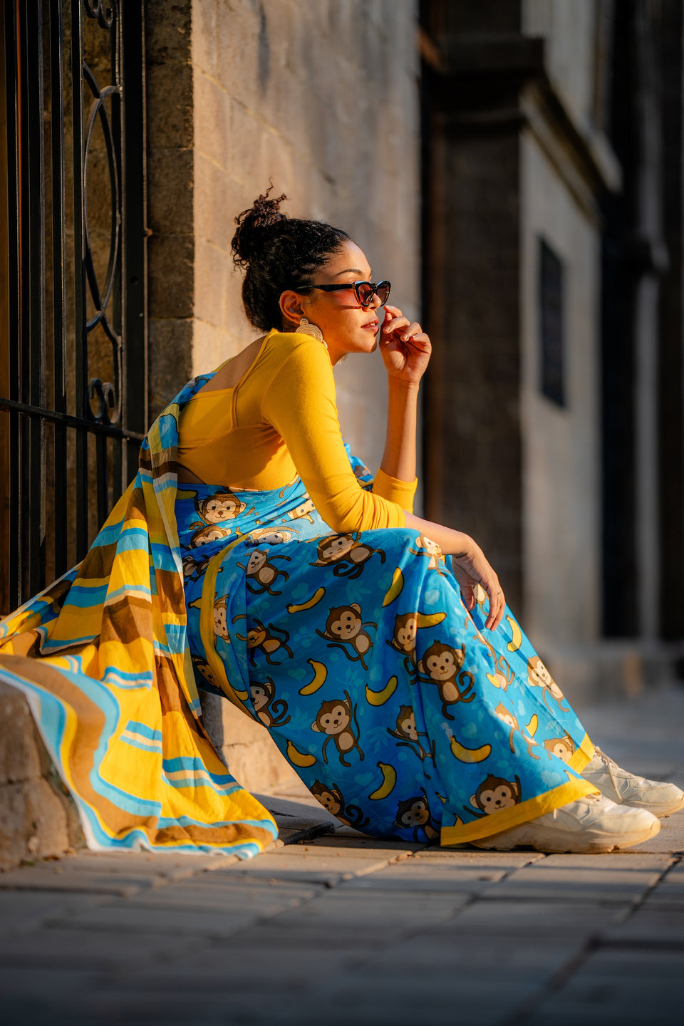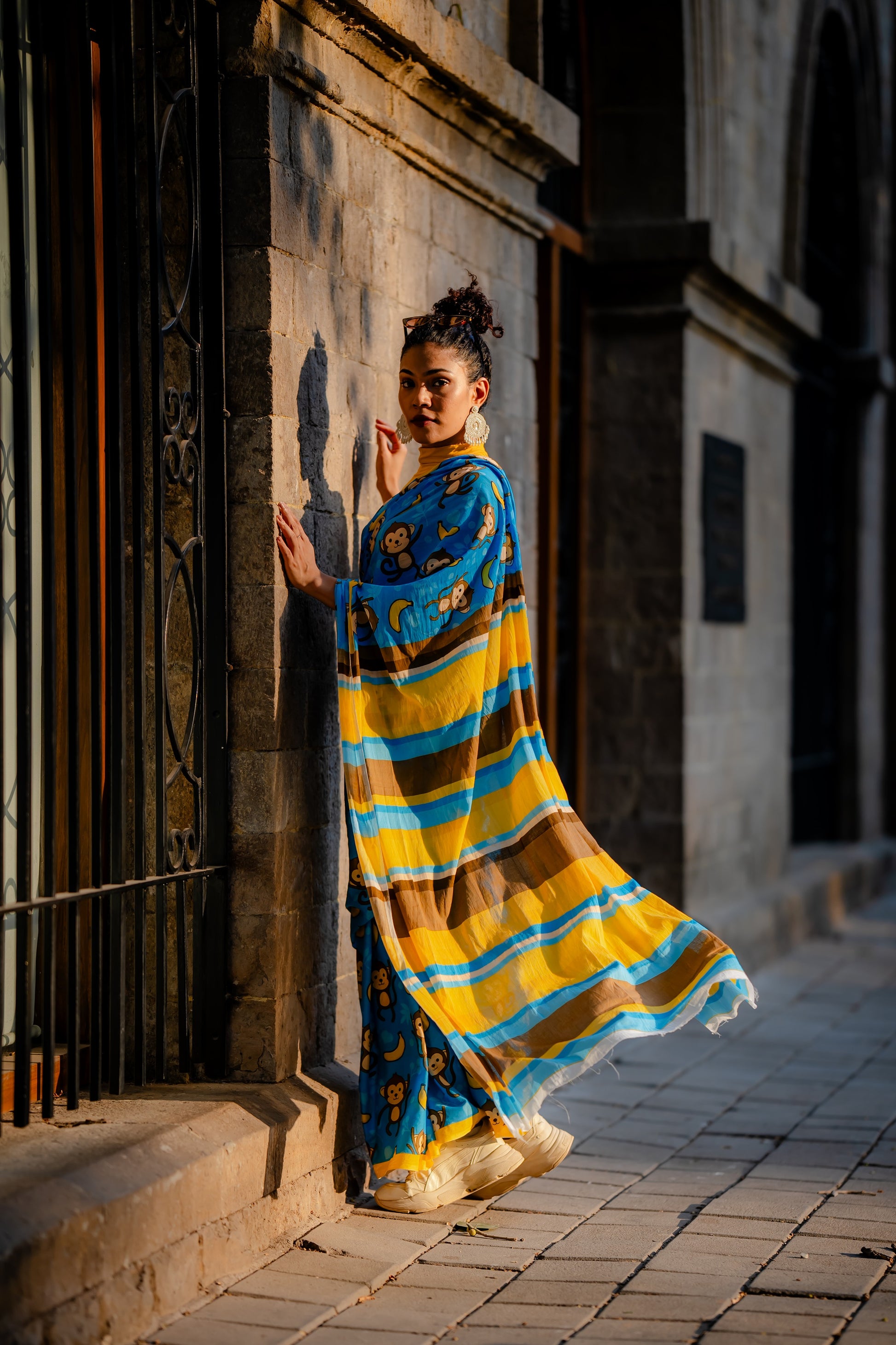 Handspun handwoven cotton saree, digitally printed. Length 6 mts, Width 60 inch, Blouse piece : No