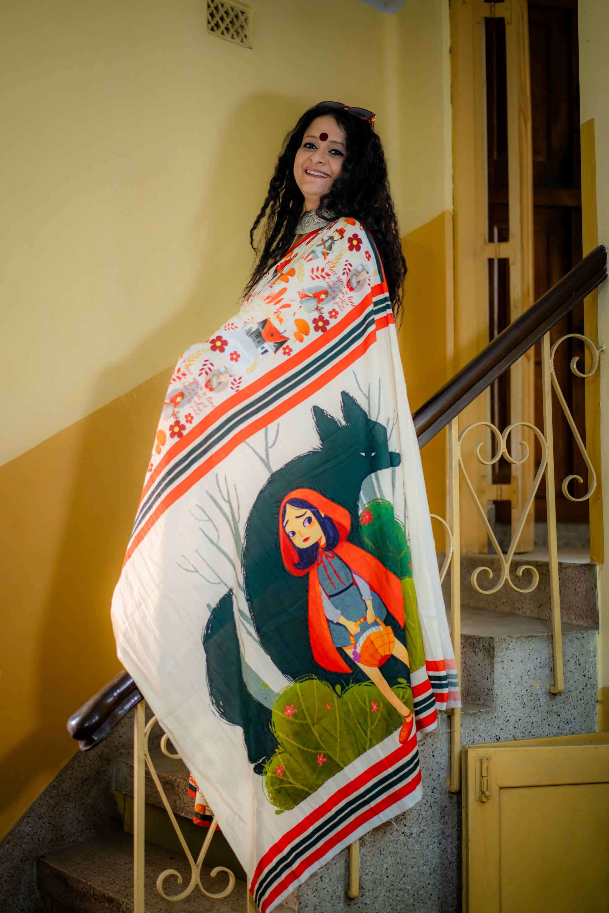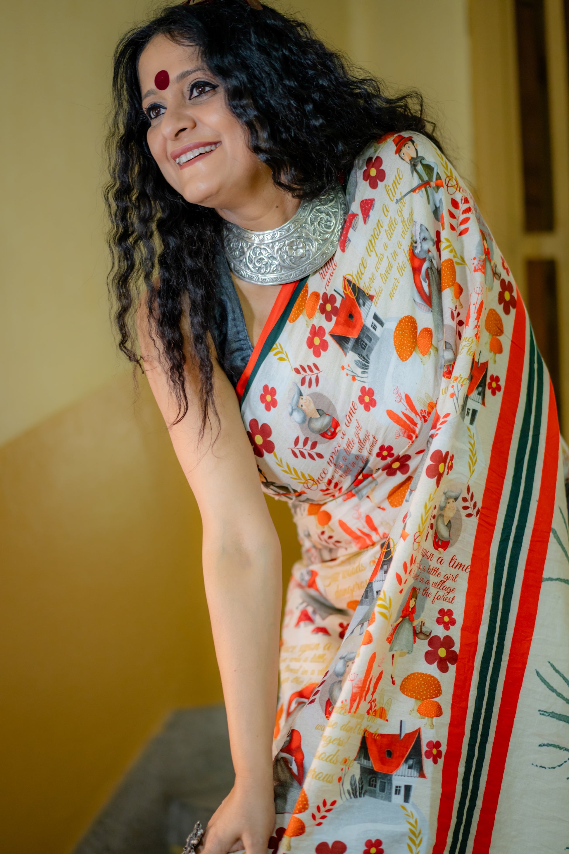 Handspun handwoven cotton saree, digitally printed. Length 6 mts, Width 56 inch, Blouse piece : No
