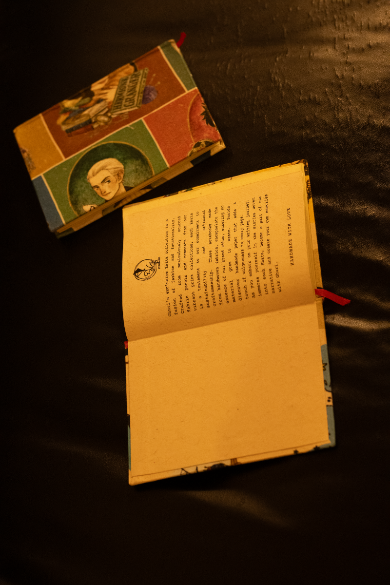 These medium-sized notebooks or Khata are a celebration of sustainability and creativity, crafted from handmade paper and leftover scrap fabrics from the print house. Each hardbound notebook carries a unique texture and character, making it perfect for jotting down thoughts, sketches, or memories. Thoughtful and beautiful, it’s not just a notebook—it’s a meaningful gift that tells a story with every page.