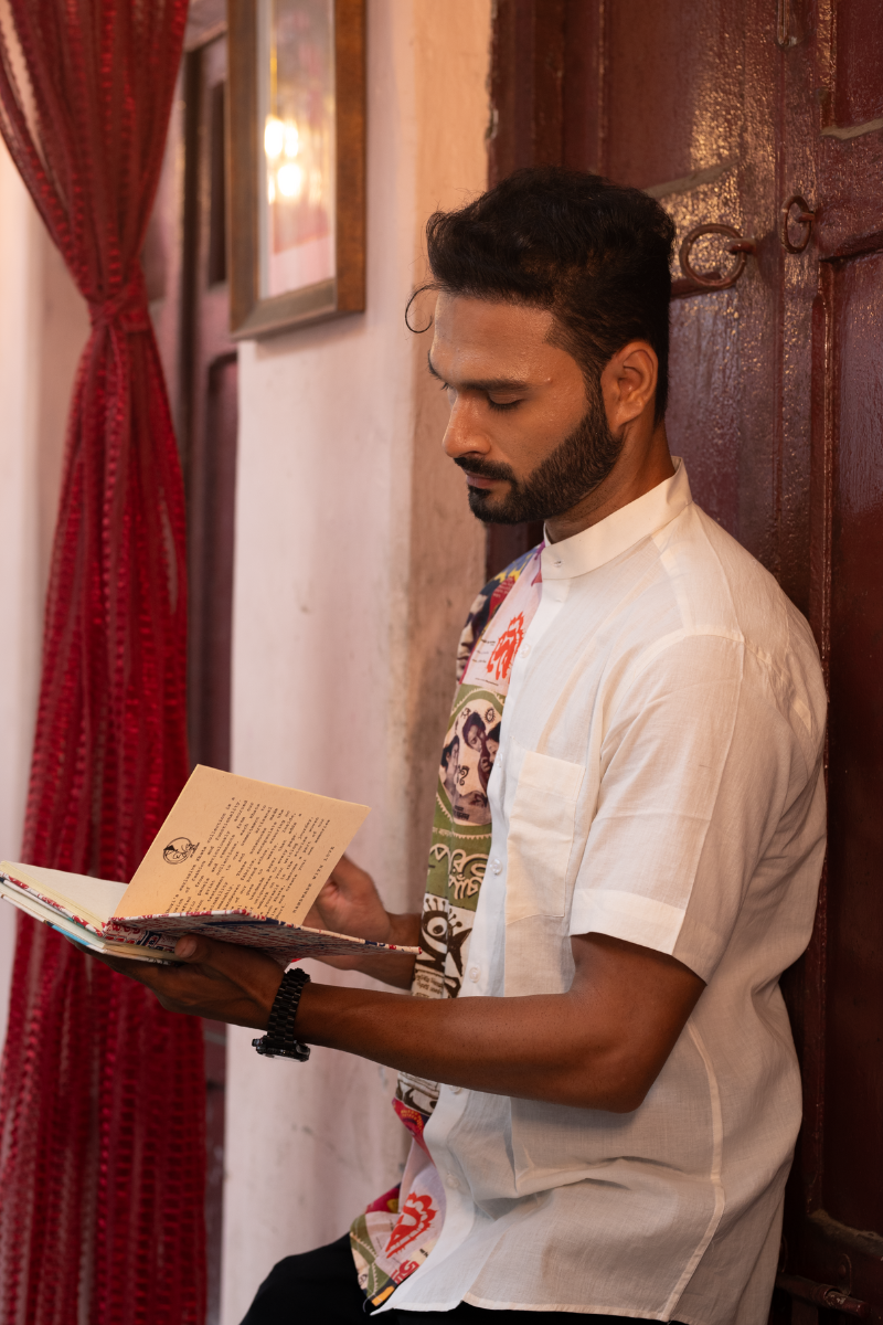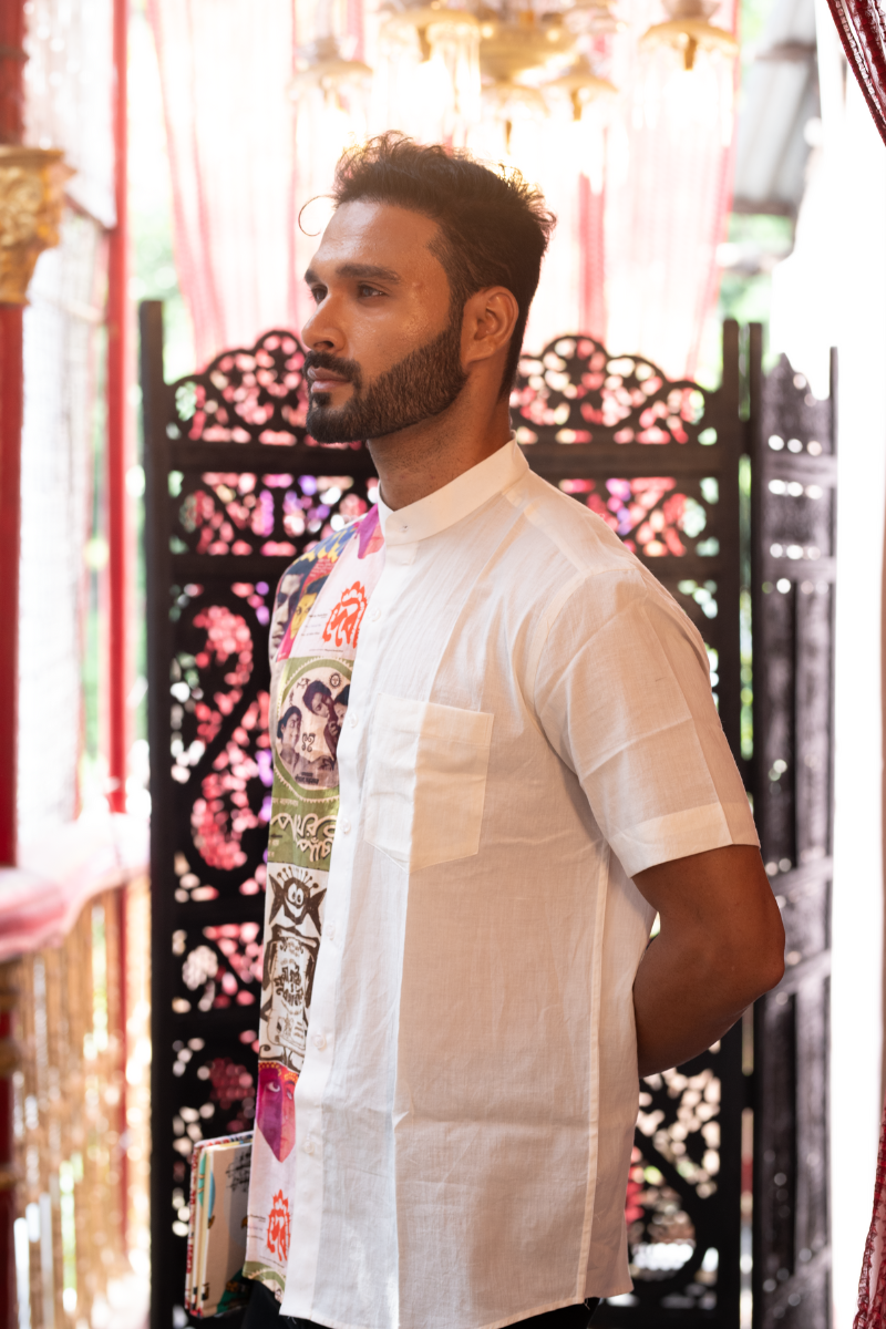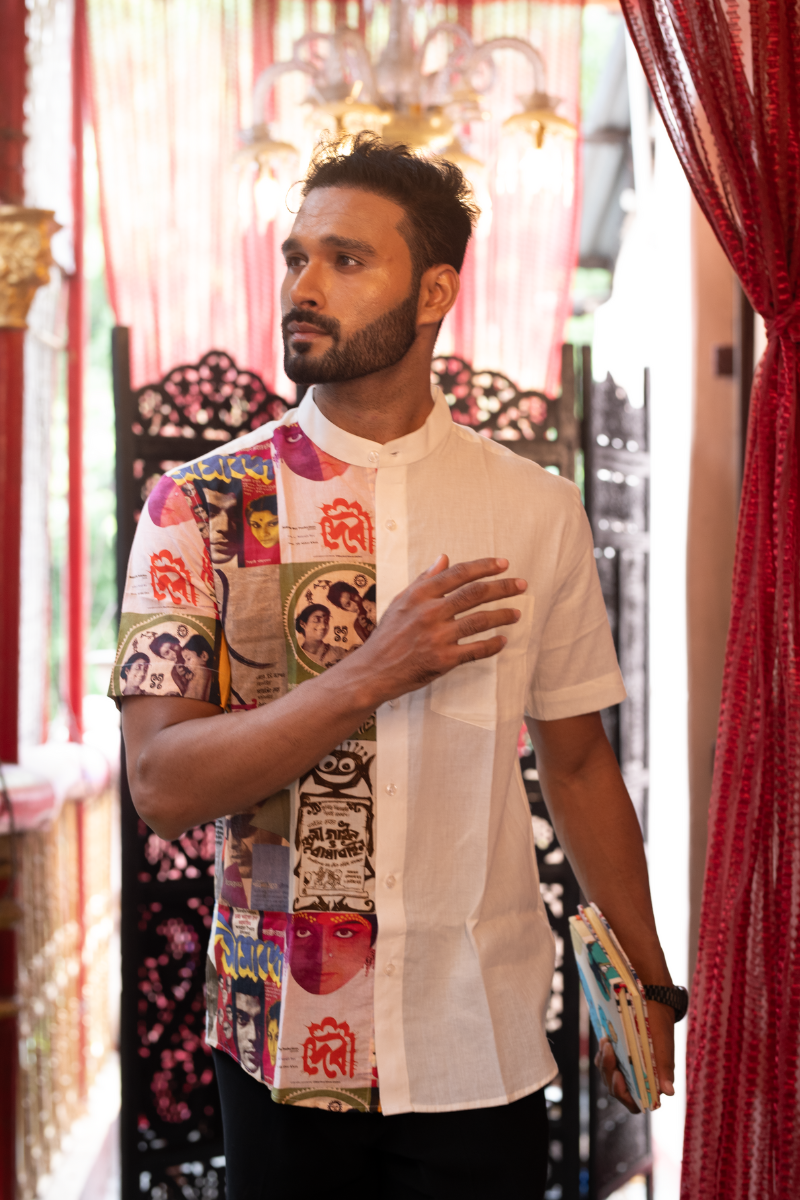 An ode to cinematic brilliance — the Satyajit Ray Poster Shirt draws inspiration from the timeless posters of Ray’s classics. Each frame-inspired motif celebrates his mastery of storytelling, translated into wearable art.