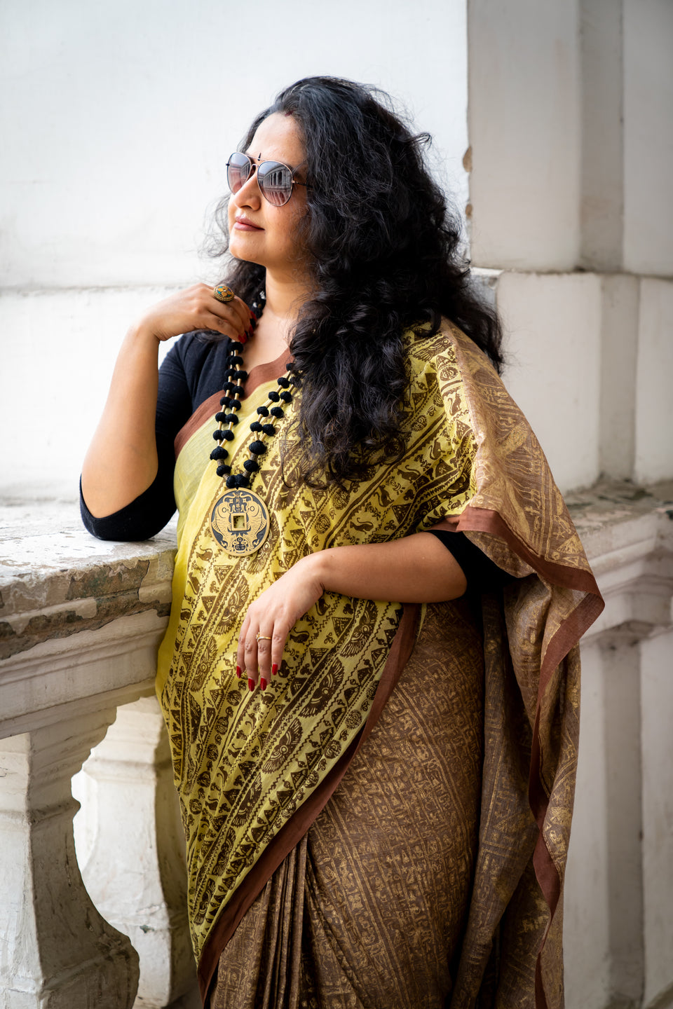 Egypt is a land of sands, land of hieroglyphics, Pharaohs and mystery. In remembrance to those mysterious era and historical lands, this hand blockprinted handspun handwoven cotton saree is a keepsake.