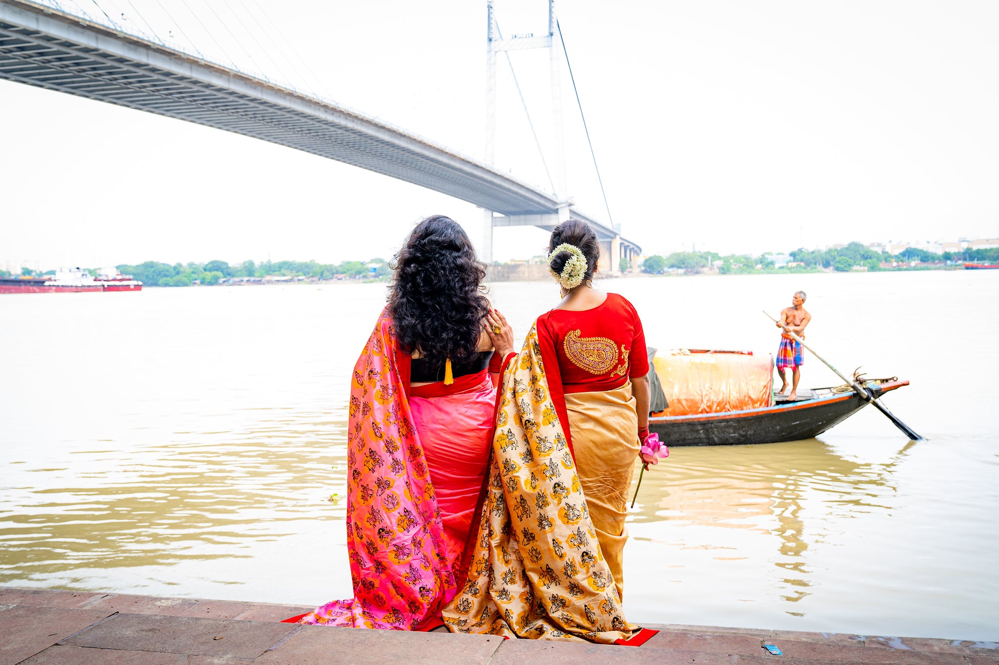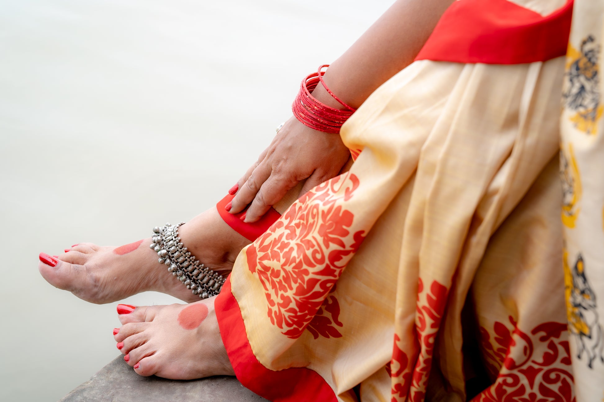 A special Durga pujo saree on 3 ply kataan silk with Nine forms of Durga, Nabadurga, printed on a big elaborate anchol. There is a traditional bengali biyer piri design, a half mandala, runnung along the border. The midriff has a golden peacock block print. Avialable in 3 colours.