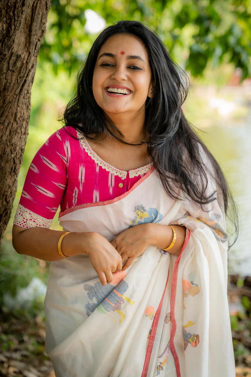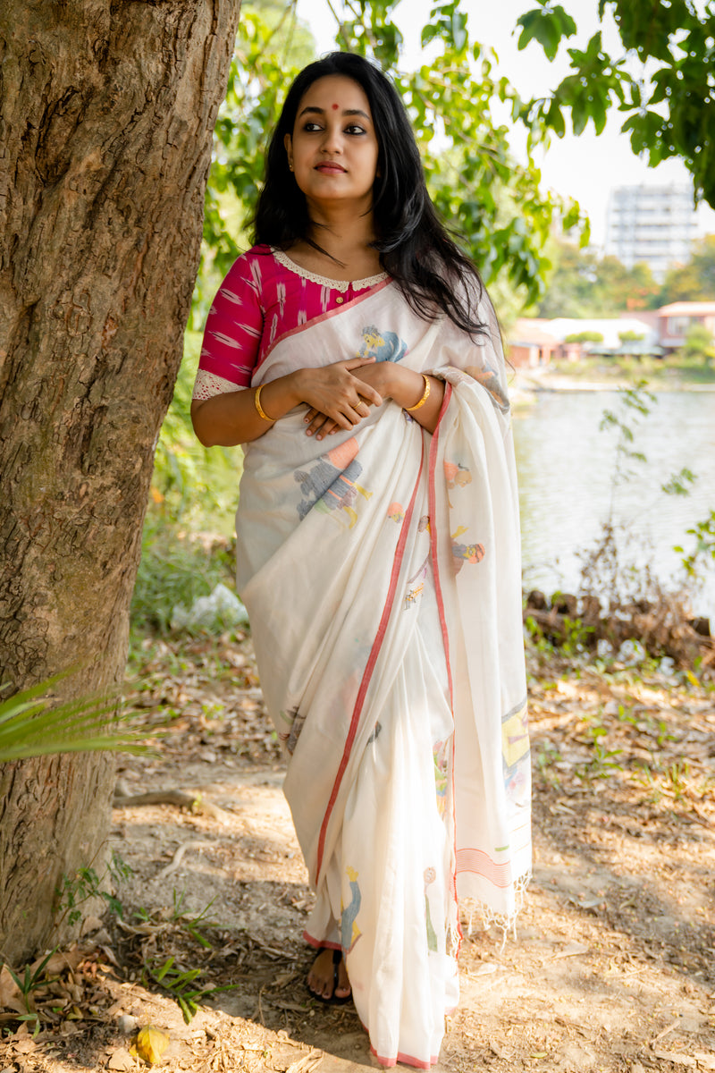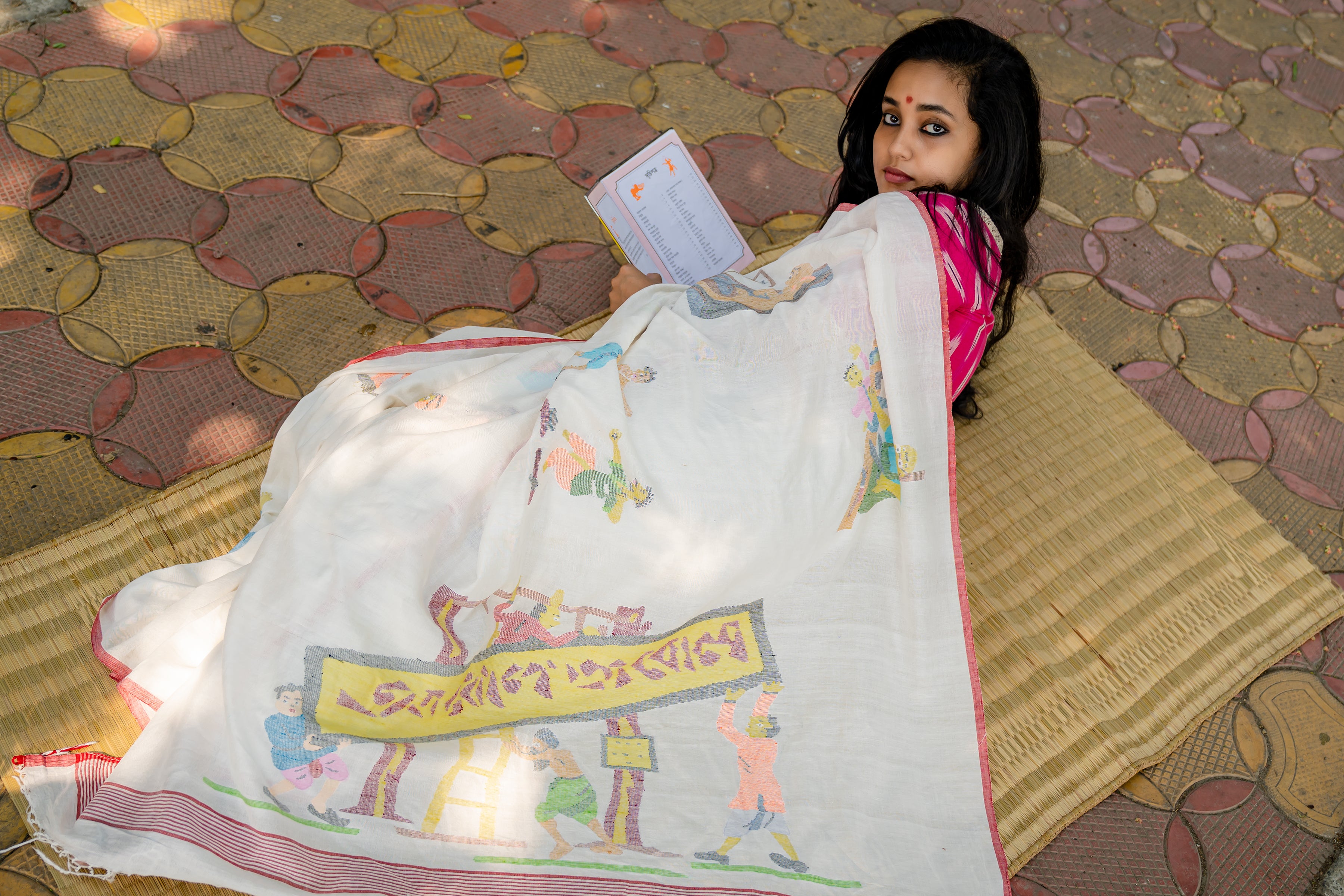 Revisiting Sukumar Ray’s Abol Tabol by woven six yards, where the characters come alive with the touch of handwoven Jamdani. There are a total of 21 different characters woven all over the saree. Comes with blouse piece. Done only on preorder.