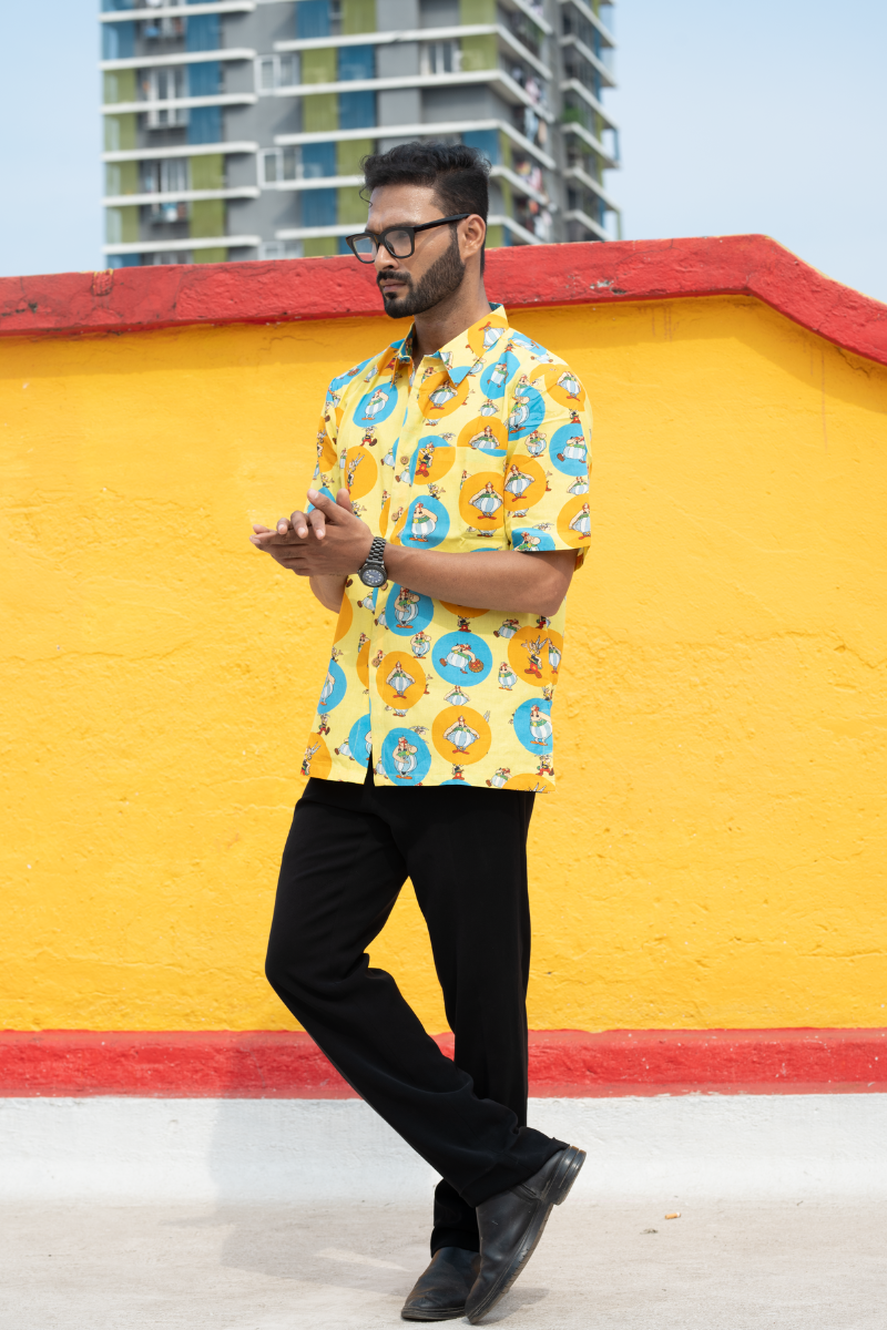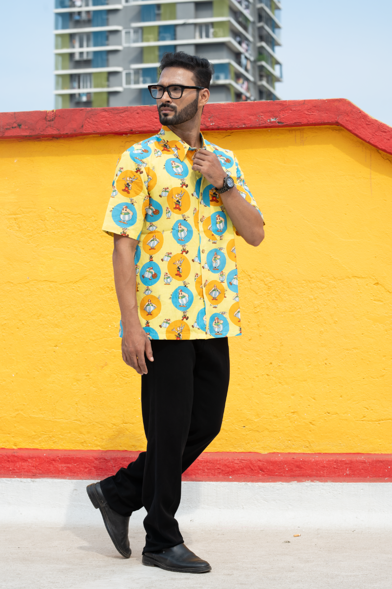 A playful nod to the iconic comic duo, this Asterisk and Obelisk Shirt blends nostalgia with comfort. Digitally printed on handspun, handwoven cotton, it celebrates craftsmanship with a modern twist. Perfect for casual days and festive moods alike.