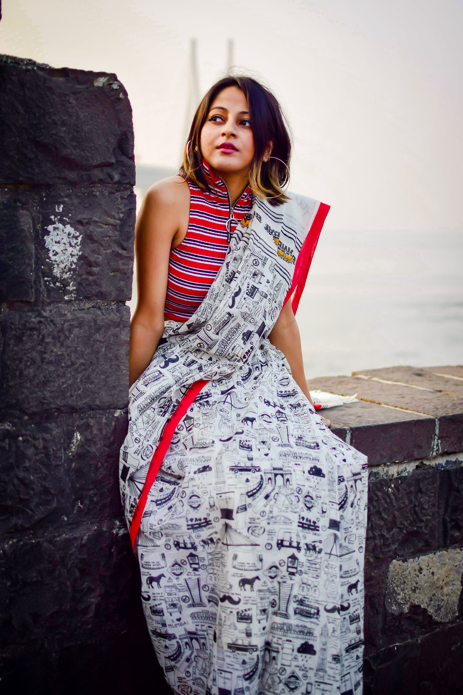 I love how this saree feels like a little movie on fabric, so full of Mumbai’s life and charm
