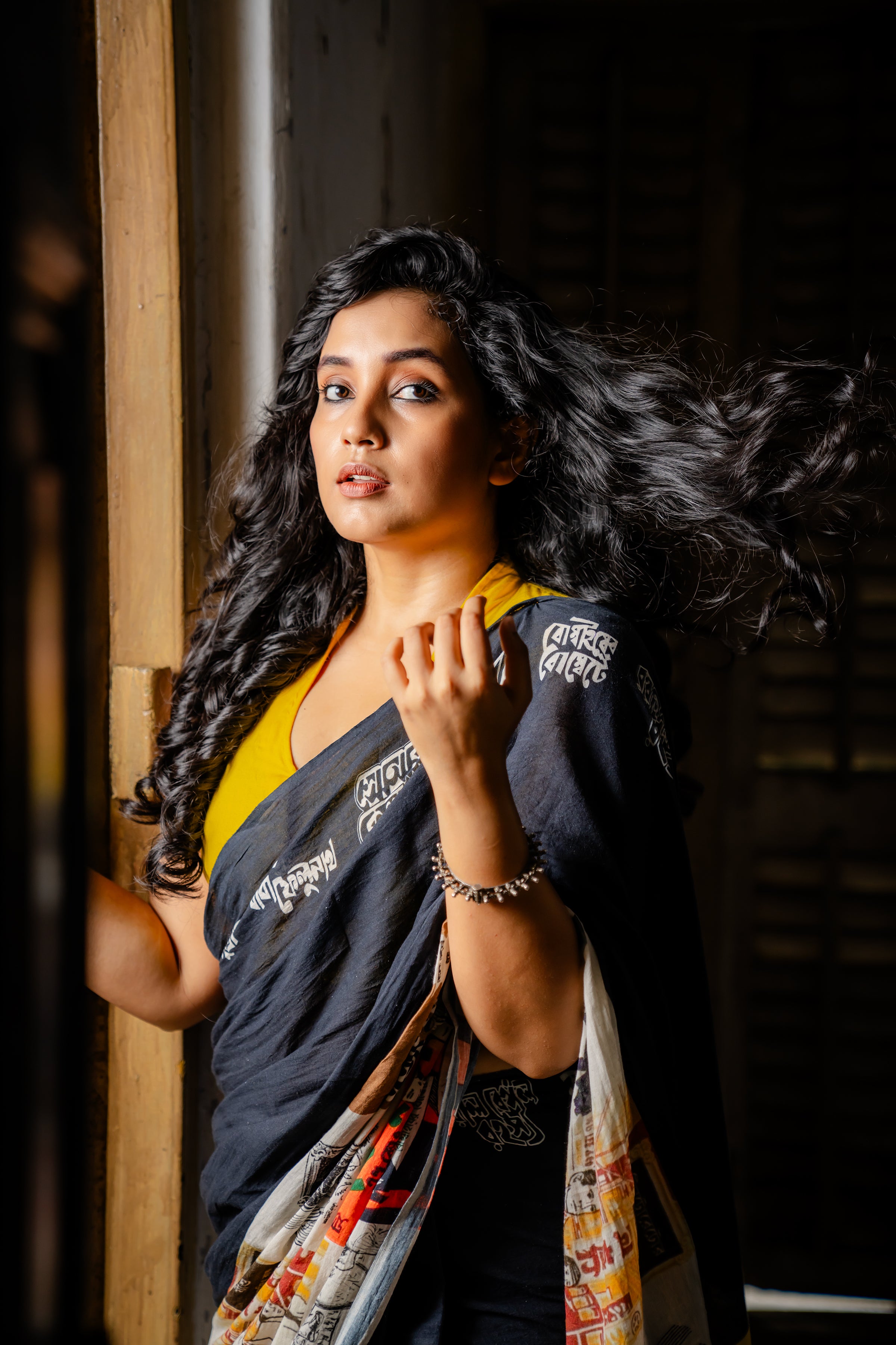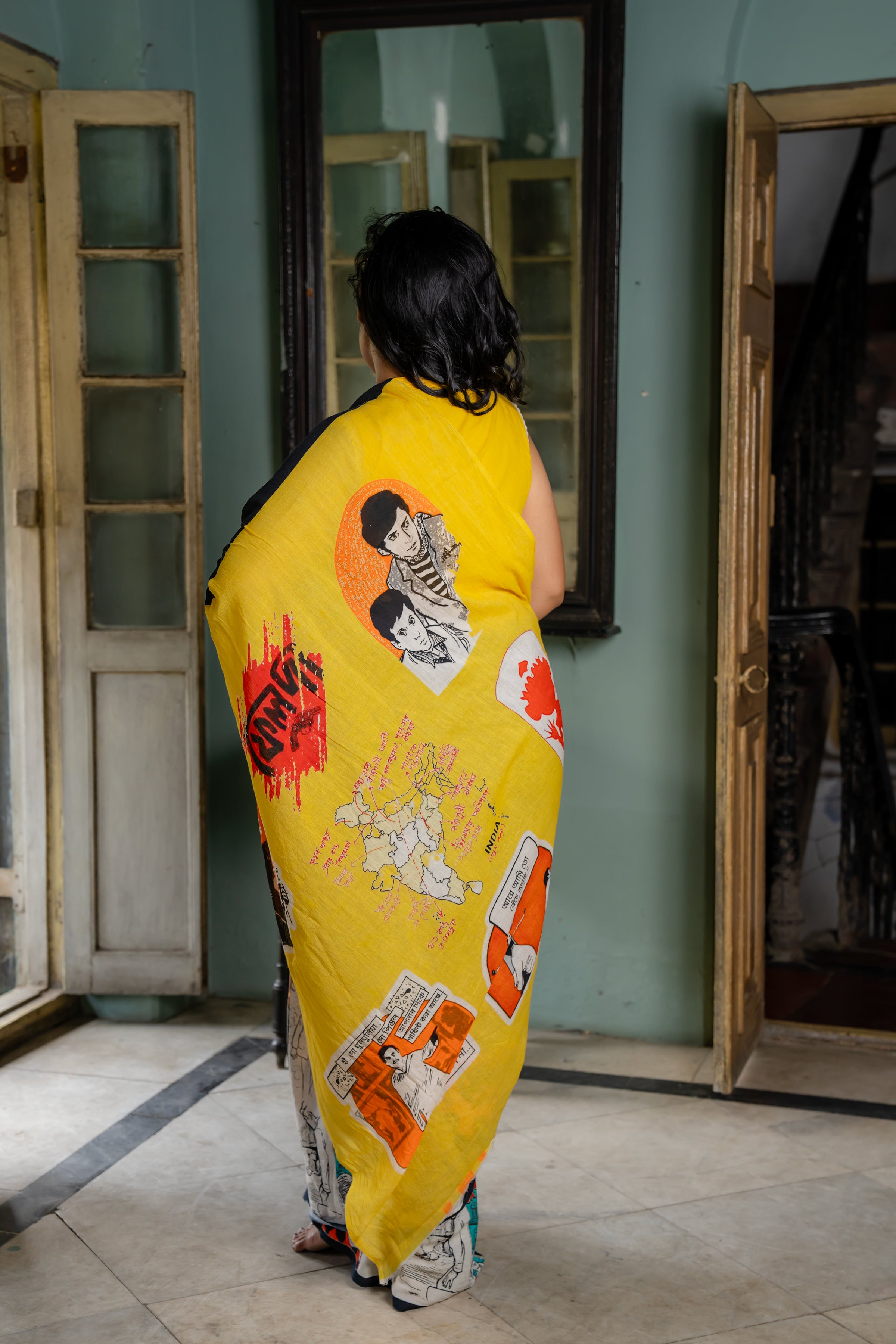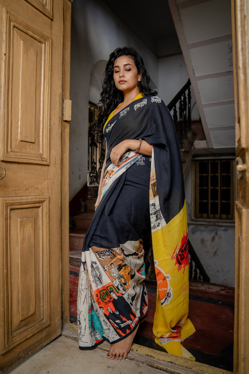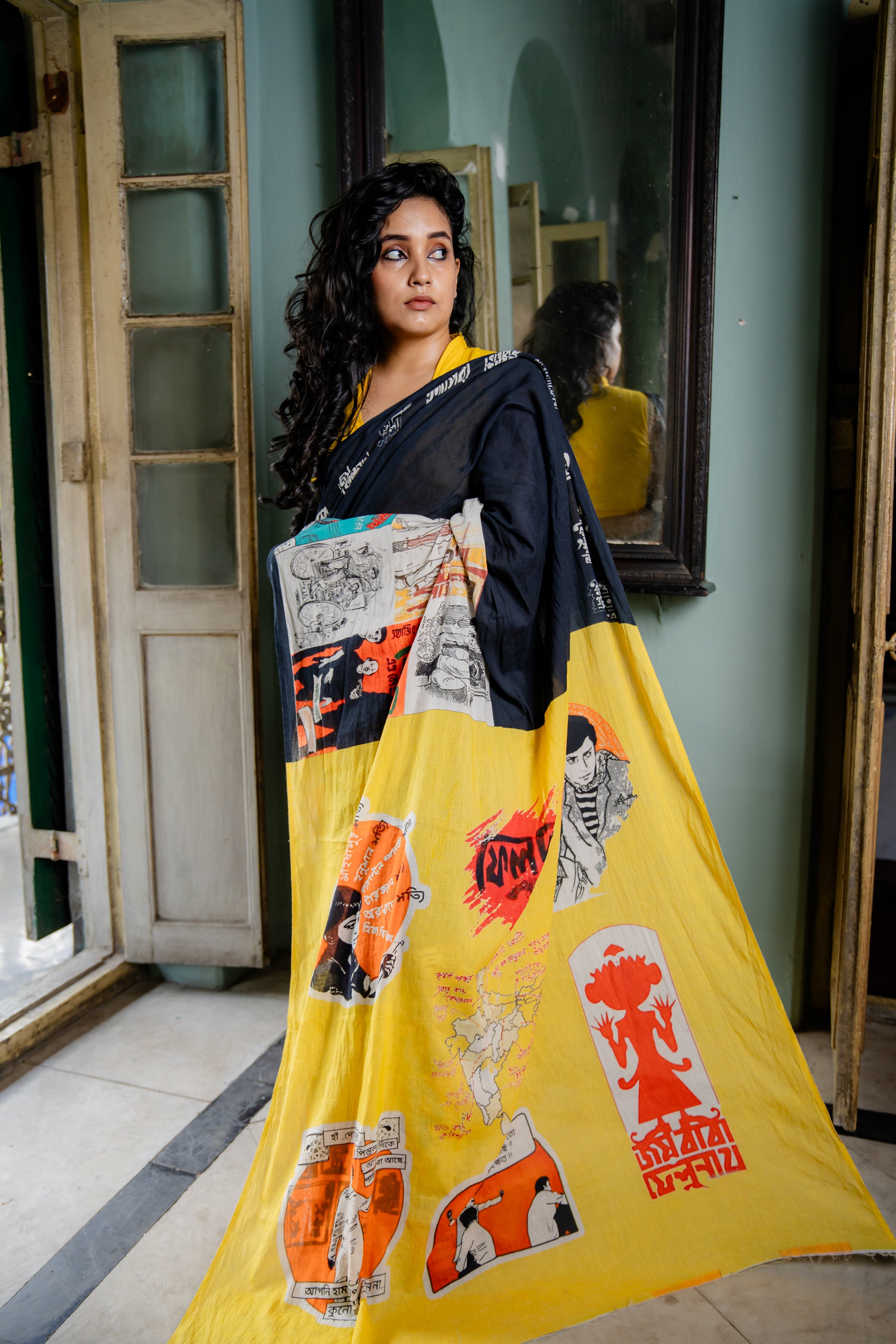 Handspun handwoven cotton saree, digitally printed. Length 6 mts, Width 52 inch, Blouse piece : No