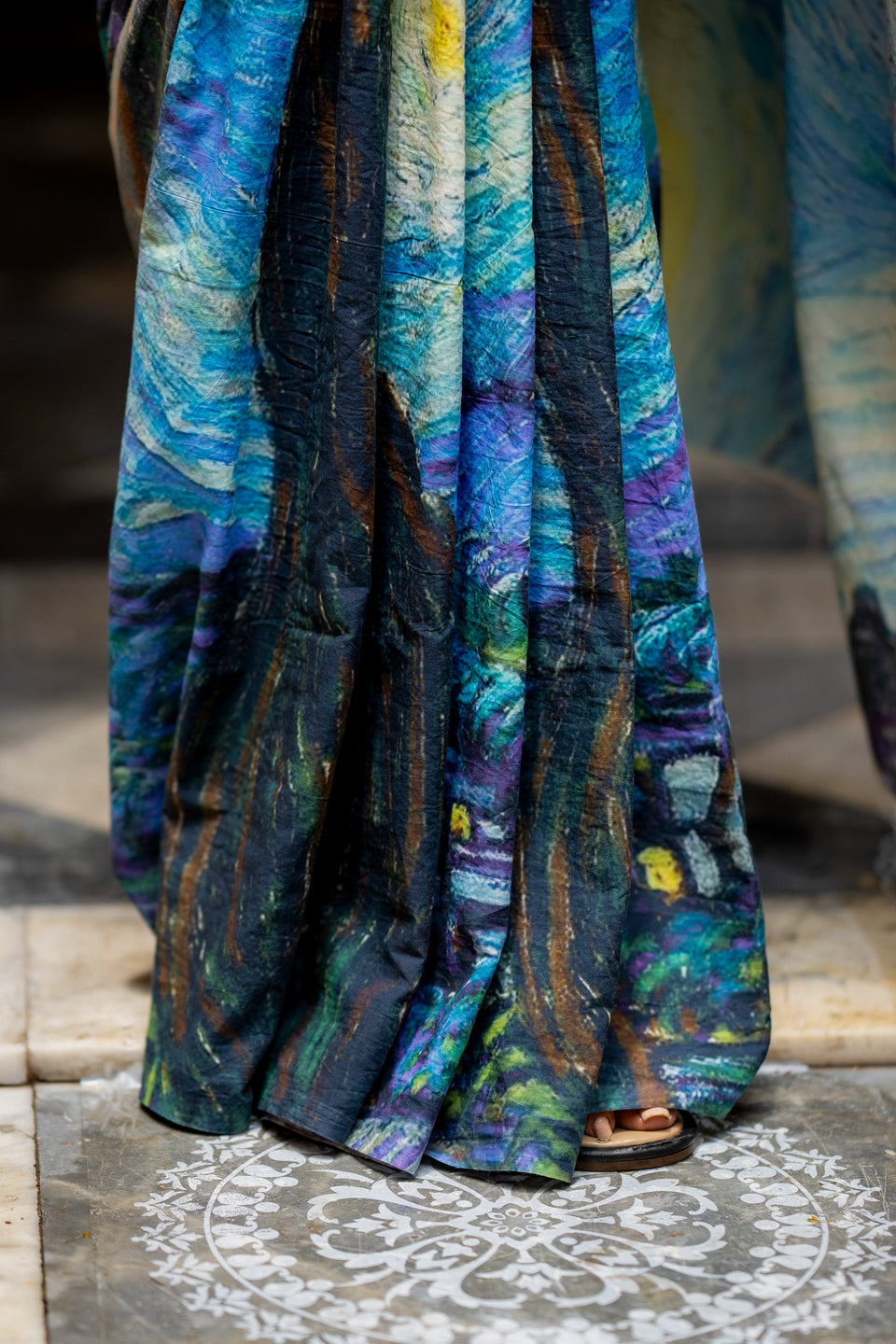 Wearing this saree feels like carrying a piece of Van Gogh’s starry sky